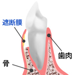 歯周病であごの骨が失われた箇所に特殊な膜を張ることで、あごの骨や歯根膜が再生するためのスペースを確保する治療法です。