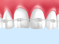 セラミックブラケット半透明のセラミック製ブラケットです。矯正装置としての機能は見た目が美しいことが特長です。